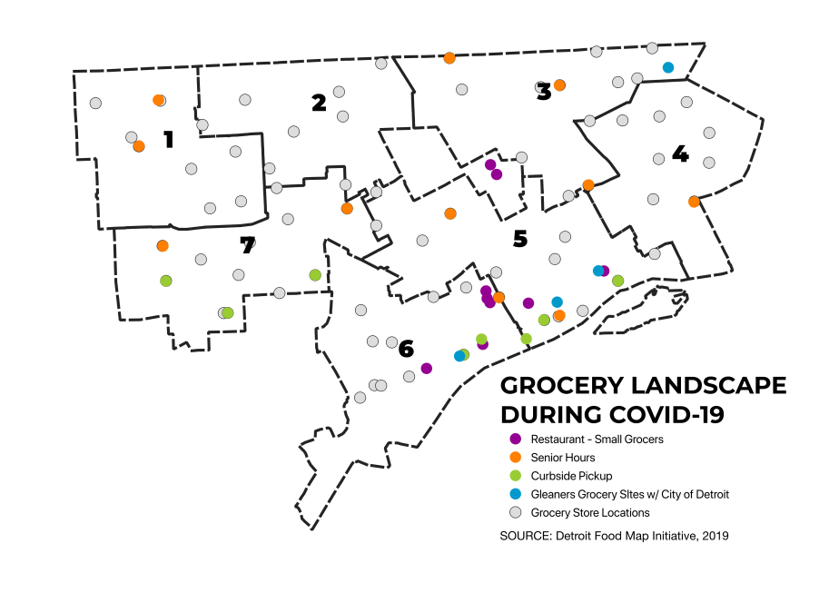 As part of the Detroit Grocery Coalition, convened by the Detroit Food Policy Council, I’ve been tracking changes along with colleagues at the City of Detroit. Independent grocers are holding steady in the neighborhoods although at reduced staffING, hours, and sometimes supply chain – but the landscape of support during COVID-19 shows specific food access opportunity patterns across Detroit.