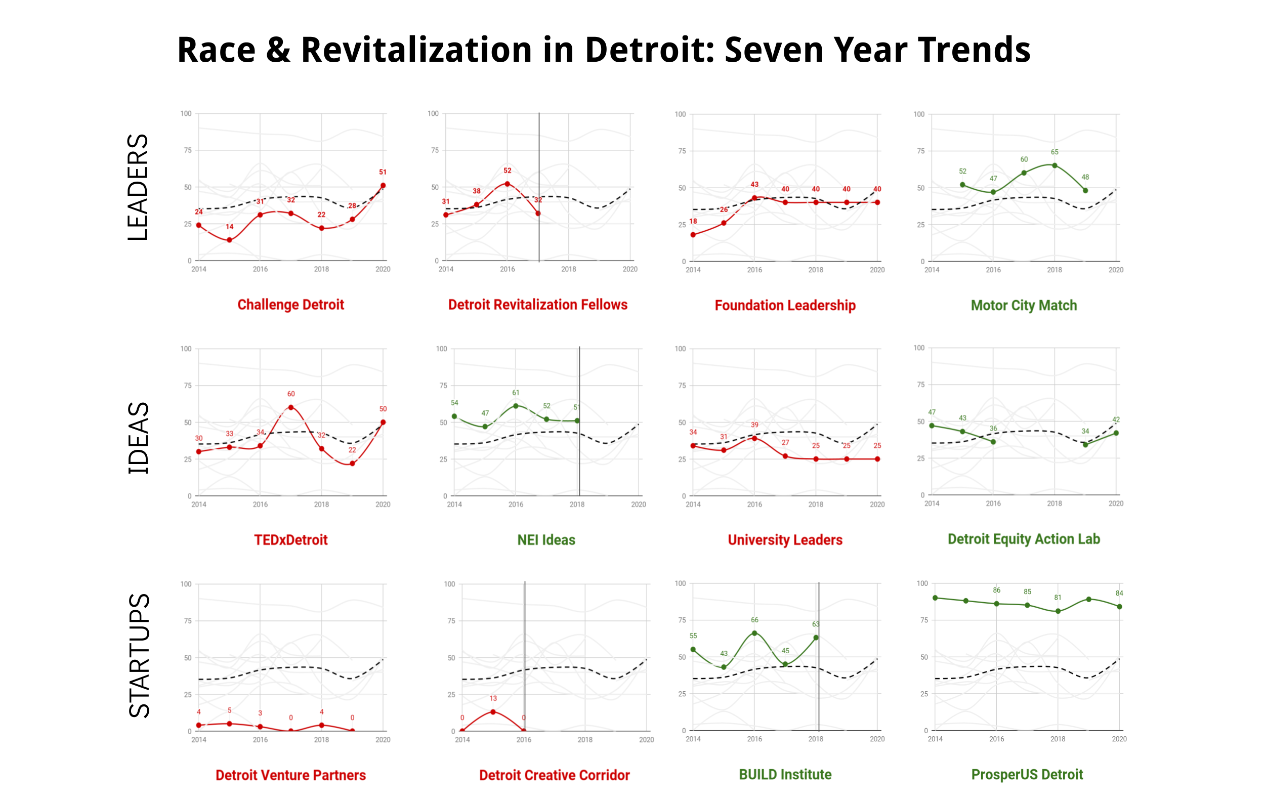 In Detroit, the leading “revitalization” programs still don’t represent the people impacted. The issue of structural racism is bigger than a handful of programs and fellowships, but these programs offer a critical reflection point. Many social problems function with a network effect and racial disparities in employment have been persistent. The fellowships reflected their corporate sponsors and foundation priorities similarly reflect their boards and leadership. Representation matters, but especially when those represented do not reflect the impacted community.
