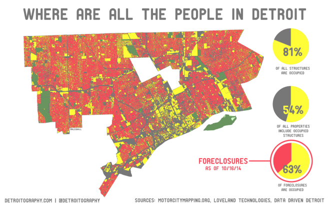 This year the Wayne County Treasurer identified 61,912 properties in Detroit for foreclosure in 2015. Loveland Technologies found that 35,669 of these properties (63%). People live here. Simply looking at the data with the enormous number of foreclosures or the amount of taxes due to the city is not enough.