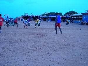 They had tiny nets with nho goalie and used the area next to the market as well as the people in the market and the big football field as a game field. The were very skilled and cursed anyone who got in the way of the game, as it was a game that took away a major walking path.