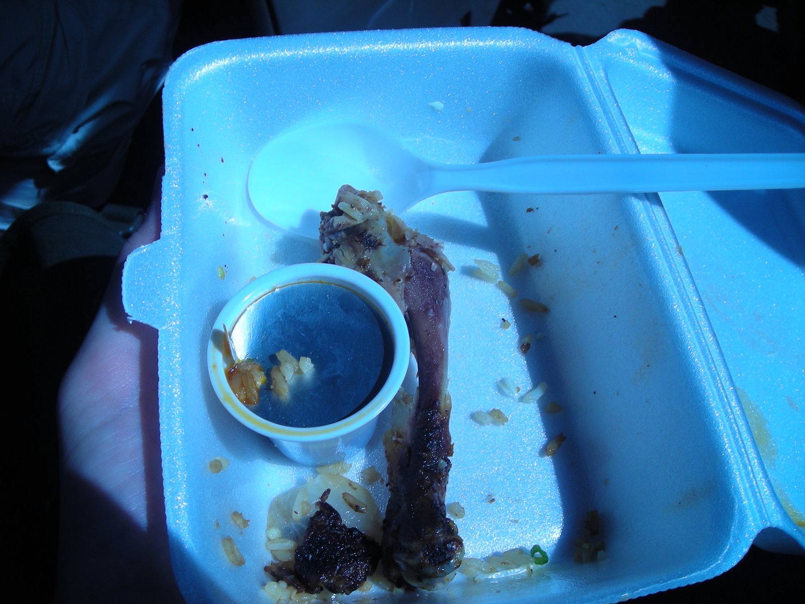 We stopped at a cafeteria and asked for some rice ‘to go.’ Our waiter thought that we wanted to eat outside or have food delivered. He finally understood and we briskly walked to the bus. We got some very cheap and delicious boxes of rice and chicken.