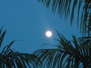 The moon between palm trees at our hostel on Don’s 21st birthday.